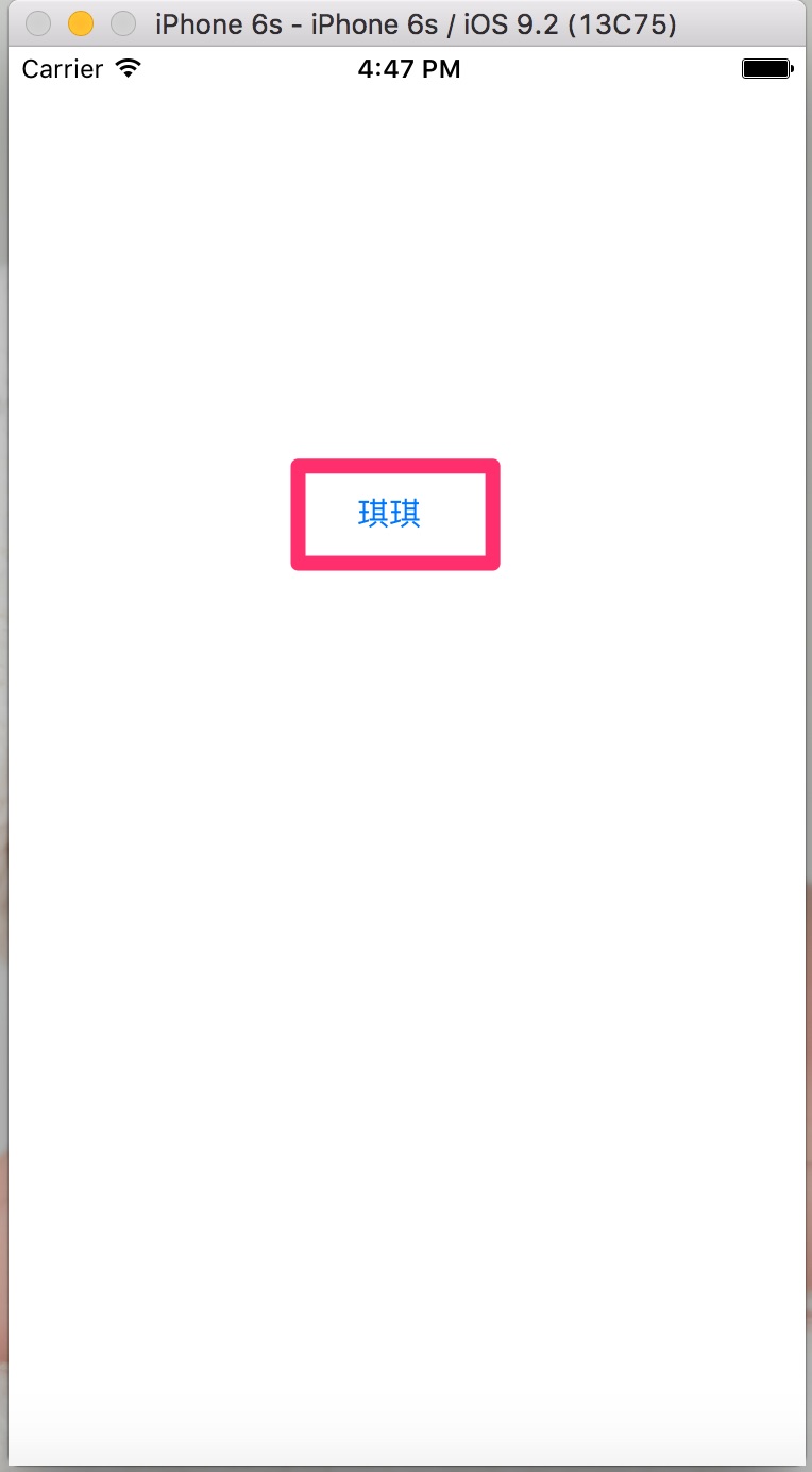 程序实现打开Xcode工具,新建iOS工程Love,将一个Button拖入Main.storyboard中,并将其命名为“琪琪”。同时,调整该Button在屏幕上的位置,效果如图1所示。然后,将该按钮关联到“showMessage”事件处理方法。