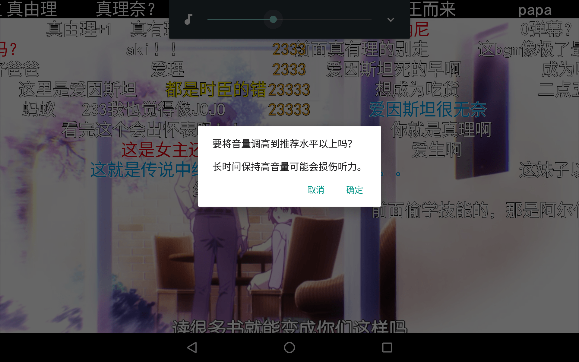 只要在设置音量后,复查一次当前值是否相当,如果比较小,则交由系统来显示音量提示对话框。而此时因欲设定的值超过推荐值,一般会触发「音量过高警告」提示用户,用户确认后即可设置成功。