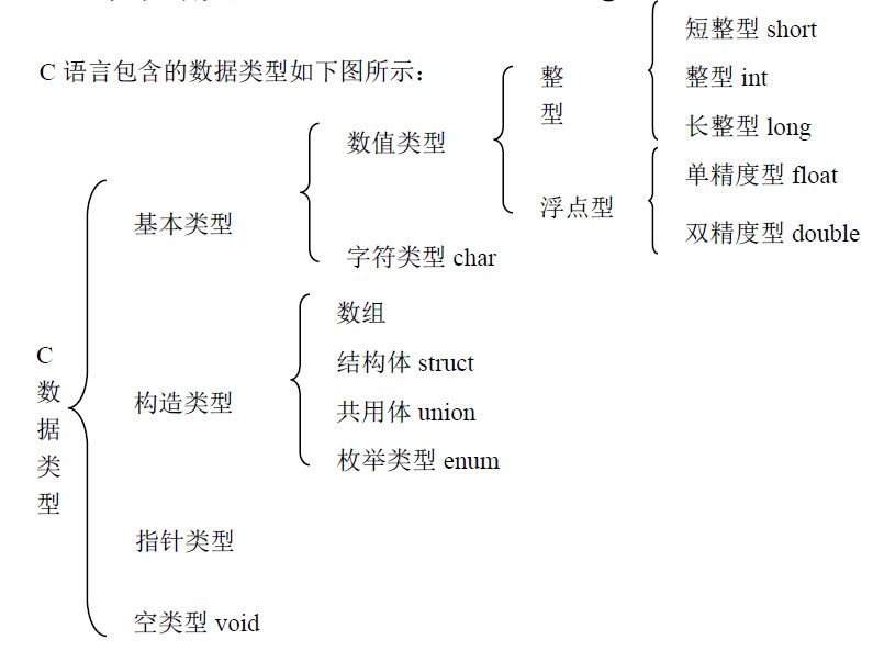 char, int, float, double, long, short and 组合关键字signed, unsigned, void
