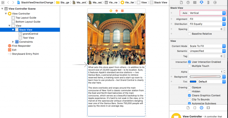 这样就完成了!你可以立刻看到在 Storyboard 中改变方向的后的效果,甚至都不用运行这个应用。