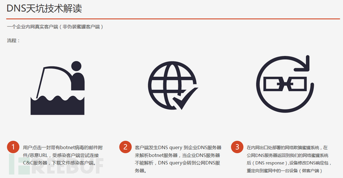 检测可疑和 botnet 服务器通讯的 DNS 流量,当检测到相关流量,它会更改 botnet 服务器 DNS 地址从定向到我指定的蜜罐服务器上,在沙箱的环境中,监控和分析 botnet 网络行为和特征。