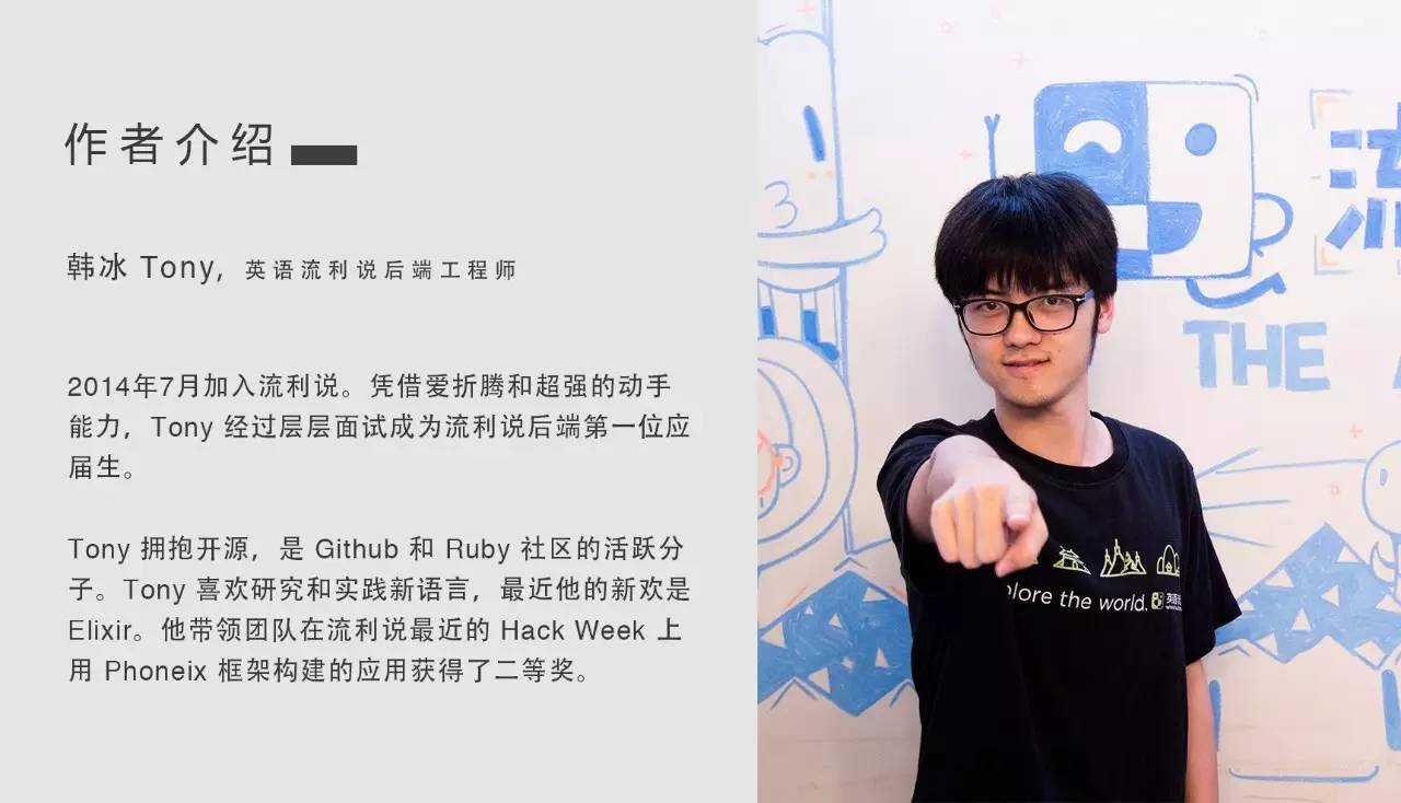 可能我的一些理解还不到位,所以有失偏颇, 欢迎和大家一起交流、指正。同时,我们也正在积极的招聘 Ruby 后端工程师,对流利说团队感兴趣的小伙伴们可以直接发简历到 jobs@liulishuo.com,期待有机会在面试中交流切磋。