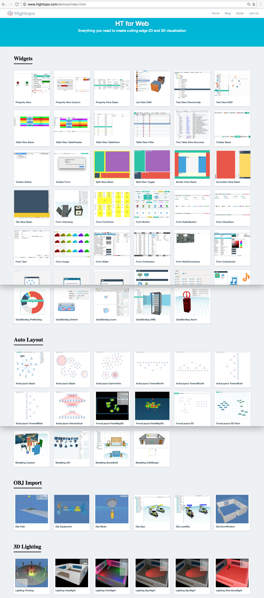 这样综合并可搜索的手册入口居然还常被问及 HT 的 Demo 在哪里?只能怪这些年深入人心的极致用户体验理念,把人惯得包括很多程序员都如此之“懒”,当然也怪我们没把用户体验的最后一公里做到位,于是最近 wangyinlong 同学人工例子抓图,将数百个手册例子进行了归类整理,最终形成了方便大家直观查找所有 HT 例子的页面: http://www.hightopo.com/demos/index.html