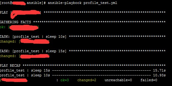 现在,执行 ansible-playbook 命令就会看到 playbook 中每个 tasks 的用时情况。