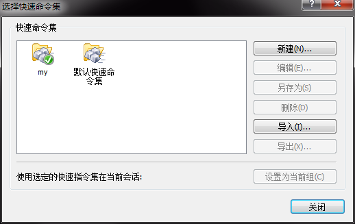 首先打开菜单-工具-快速命令集,会看到如下图所示的窗口