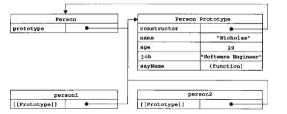 //...上面的代码,此处省略 var person2=new Person(); person1.name='Mike'; person1.sayName();//Mike person2.sayName();//Nicholas
