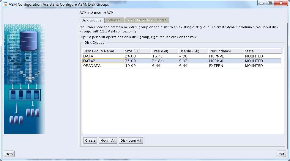2. 备份磁盘头 [root@asm asm]# dd if=/dev/asm-diskf of=/asm/diskf3.bak bs=1M count=100 100+0 records in 100+0 records out 104857600 bytes (105 MB) copied, 0.171521 seconds, 611 MB/s 3. 清除磁盘头 [root@asm asm]# dd if=/dev/zero of=/dev/asm-diskf bs=1M count=100 100+0 records in 100+0 records out 104857600 bytes (105 MB) copied, 0.0213577 seconds, 4.9 GB/s 4. 查看磁盘组状态 SQL> select group_number,name,state,type from v$asm_diskgroup; GROUP_NUMBER NAME STATE TYPE ------------ ------------------------------ ----------- ------ 1 DATA MOUNTED NORMAL 2 ORADATA MOUNTED EXTERN 3 DATA3 MOUNTED HIGH 5. Dismount磁盘组DATA3 SQL> alter diskgroup data3 dismount; Diskgroup altered. 6. Mount磁盘组 SQL> alter diskgroup data3 mount; alter diskgroup data3 mount * ERROR at line 1: ORA-15032: not all alterations performed ORA-15040: diskgroup is incomplete ORA-15042: ASM disk "0" is missing from group number "3" 7. 查看alert日志 SQL> alter diskgroup data3 mount NOTE: cache registered group DATA3 number=3 incarn=0x36489cbc NOTE: cache began mount (first) of group DATA3 number=3 incarn=0x36489cbc NOTE: Assigning number (3,4) to disk (/dev/asm-diskj) NOTE: Assigning number (3,3) to disk (/dev/asm-diski) NOTE: Assigning number (3,2) to disk (/dev/asm-diskh) NOTE: Assigning number (3,1) to disk (/dev/asm-diskg) Fri Apr 03 09:52:35 2015 WARNING: GMON has insufficient disks to maintain consensus. minimum required is 5 NOTE: group DATA3: updated PST location: disk 0001 (PST copy 0) NOTE: group DATA3: updated PST location: disk 0002 (PST copy 1) NOTE: group DATA3: updated PST location: disk 0003 (PST copy 2) NOTE: group DATA3: updated PST location: disk 0004 (PST copy 3) NOTE: group DATA3: updated PST location: disk 0001 (PST copy 0) NOTE: group DATA3: updated PST location: disk 0002 (PST copy 1) NOTE: group DATA3: updated PST location: disk 0003 (PST copy 2) NOTE: group DATA3: updated PST location: disk 0004 (PST copy 3) NOTE: GMON heartbeating for grp 3 GMON querying group 3 at 57 for pid 20, osid 8015 NOTE: group DATA3: updated PST location: disk 0001 (PST copy 0) NOTE: group DATA3: updated PST location: disk 0002 (PST copy 1) NOTE: group DATA3: updated PST location: disk 0003 (PST copy 2) NOTE: group DATA3: updated PST location: disk 0004 (PST copy 3) NOTE: Assigning number (3,0) to disk () GMON querying group 3 at 58 for pid 20, osid 8015 NOTE: group DATA3: updated PST location: disk 0001 (PST copy 0) NOTE: group DATA3: updated PST location: disk 0002 (PST copy 1) NOTE: group DATA3: updated PST location: disk 0003 (PST copy 2) NOTE: group DATA3: updated PST location: disk 0004 (PST copy 3) NOTE: cache dismounting (clean) group 3/0x36489CBC (DATA3) NOTE: messaging CKPT to quiesce pins Unix process pid: 8015, image: oracle@asm (TNS V1-V3) NOTE: dbwr not being msg'd to dismount NOTE: lgwr not being msg'd to dismount NOTE: cache dismounted group 3/0x36489CBC (DATA3) NOTE: cache ending mount (fail) of group DATA3 number=3 incarn=0x36489cbc NOTE: cache deleting context for group DATA3 3/0x36489cbc GMON dismounting group 3 at 59 for pid 20, osid 8015 NOTE: Disk in mode 0x8 marked for de-assignment NOTE: Disk in mode 0x8 marked for de-assignment NOTE: Disk in mode 0x8 marked for de-assignment NOTE: Disk in mode 0x8 marked for de-assignment NOTE: Disk in mode 0x8 marked for de-assignment ERROR: diskgroup DATA3 was not mounted ORA-15032: not all alterations performed ORA-15040: diskgroup is incomplete ORA-15042: ASM disk "0" is missing from group number "3" ERROR: alter diskgroup data3 mount Fri Apr 03 09:52:43 2015 ASM Health Checker found 1 new failures Fri Apr 03 09:55:08 2015 8. 恢复磁盘头 [root@asm asm]# dd if=/asm/diskf3.bak of=/dev/asm-diskf bs=1M count=100 100+0 records in 100+0 records out 104857600 bytes (105 MB) copied, 0.0911406 seconds, 1.2 GB/s 9. 再次mount磁盘组 SQL> alter diskgroup data3 mount; Diskgroup altered.