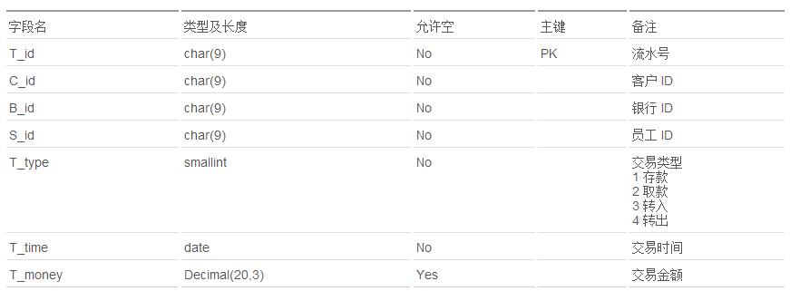 表 1. 银行交易流水信息