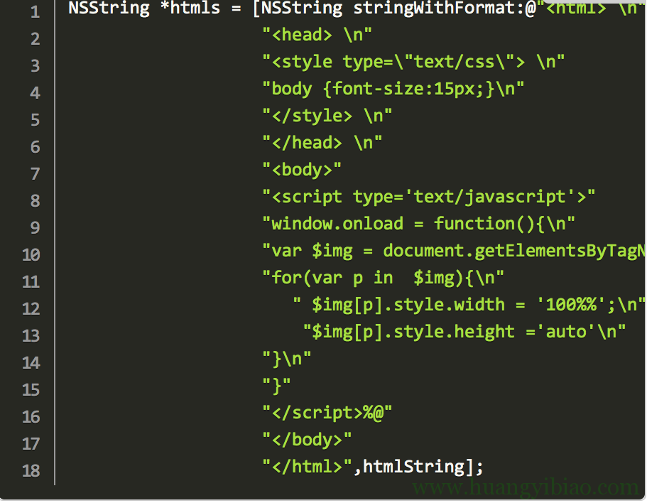 我们的需求是让图片的大小跟着屏幕的变化而变化,就是动态的去适应屏幕;那么文字的字体就是我们自己可以控制,可大可小。要想达到这样的效果,我们要在用loadHTMLString加载字符串之前对它进行处理。怎么处理呢?什么原理呢?