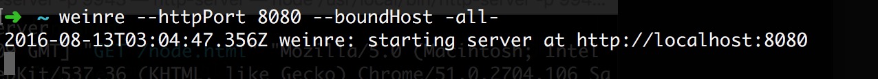 weinre --httpPort 8080 --boundHost -all-