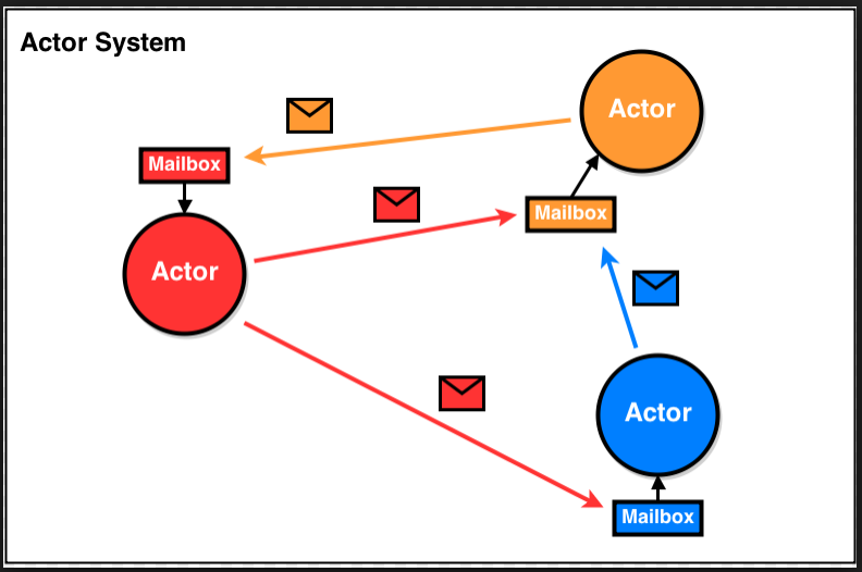 你可以将Actors当作是一群人,他们互相之间不会面对面地交流,而只是通过邮件的方式进行沟通。