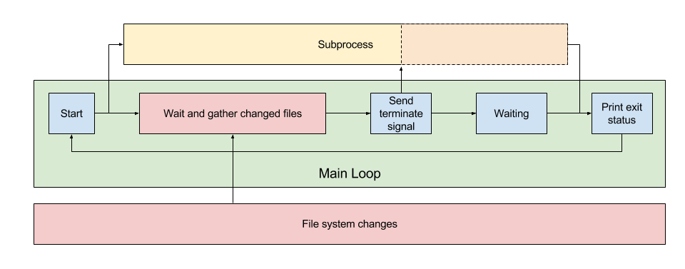 在开始着手实现之前,对于要写什么和怎么实现等方面都进行了一些思考。简单来说, 我首先确定了想要写一个通过监听文件系统修改,从而可以自动重启命令的工具。 写这样一个工具的原因是部分 Light weight 的 web framework 并没有内置自动重新加载的功能。 这样每次修改完代码就需要手动的结束原来的 Server 并重新启动。写一个小工具来自动化这一过程看起来是个不错的主意。