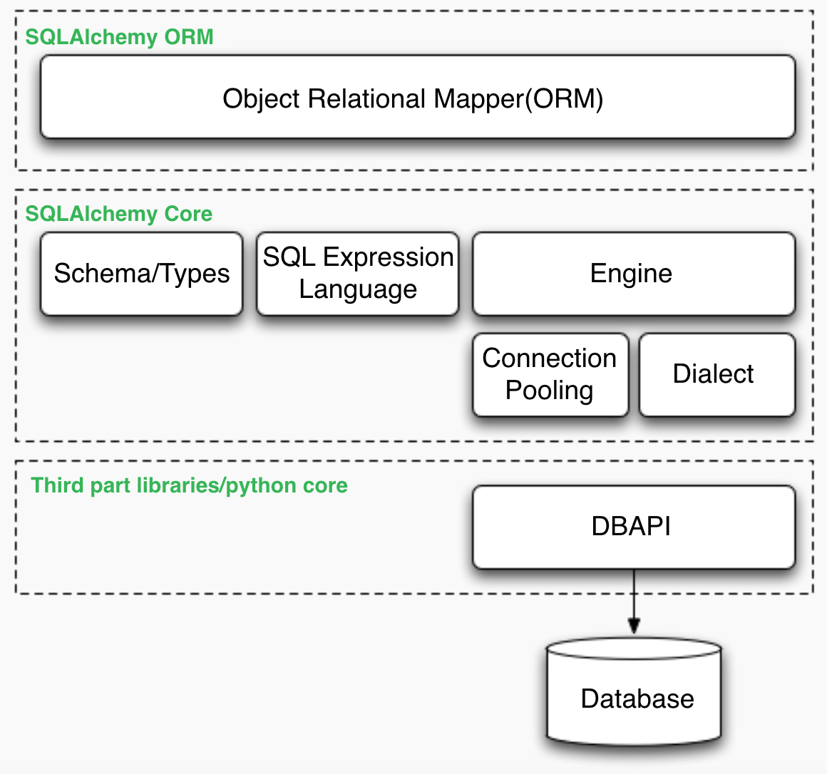 SQLAlchemy是 Python 编程语言下的一款开源软件。提供了SQL工具包及 对象关系映射 (ORM)工具,使用 MIT许可证 发行。