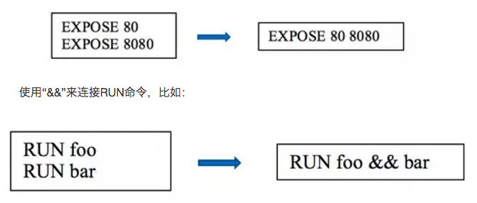 将多个可以合并的命令(EXPOSE, ENV,VOLUME,COPY)合并,比如: