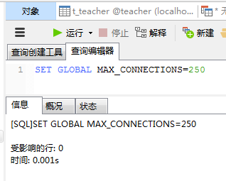 把数据库的最大连接数设置为250: