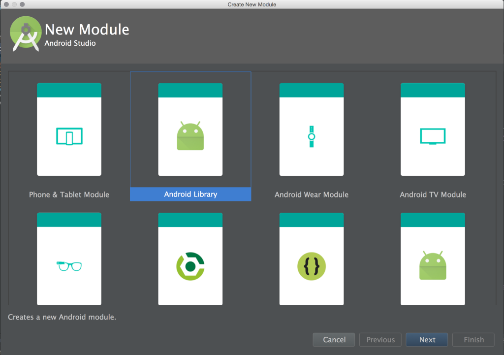 首先在Android Studio中点击File菜单,选择New->New Module,然后在弹出视图中选择Android Library,点击Next后填写库的名称。