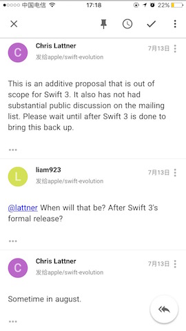 Swift 3的 beta 版现在已经出来了, Chris Lattner 之前在邮件里也大概提到说 Swift 3在八月就基本上全面完工
