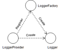 日志记录编程主要会涉及到三个核心对象,它们分别是Logger、LoggerFactory和LoggerProvider,这三个对象同时也是.NET Core日志模型中的核心对象,并通过相应的接口(ILogger、ILoggerFactory和ILoggerProvider)来表示。对于日志模型的这个三个核心对象之间具有如下图所示的关系,我们不难看出,LoggerFactory和LoggerProvider都是Logger的创建者, 而Loggerrovider却注册到LoggerFactory。单单从这个简单的描述来看,我想很多人会觉得这个三个对象之间的关系很“混乱”,混乱的关系主要体现在Logger具有两个不同的创建者。