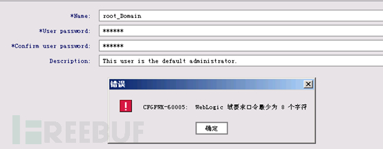 1) 禁止采用默认 weblogic 作为管理员用户名,建议采用不易被猜测的用户名,如“ root_domain ”等。