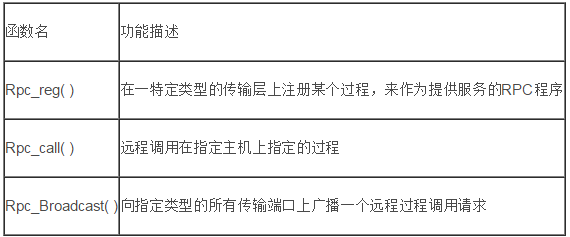 中间层向程序提供更为详细的RPC控制接口,而这一层的代码变得更为复杂,但运行也更为有效,它提供了如下功能函数。