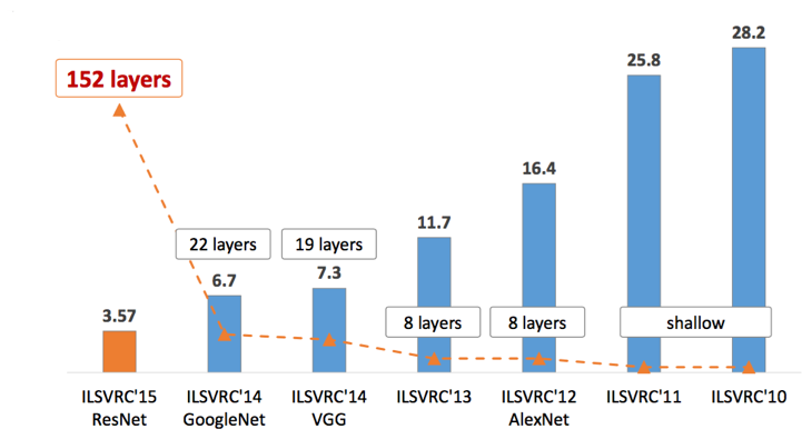 图1. ILSVRC历年的Top-5错误率