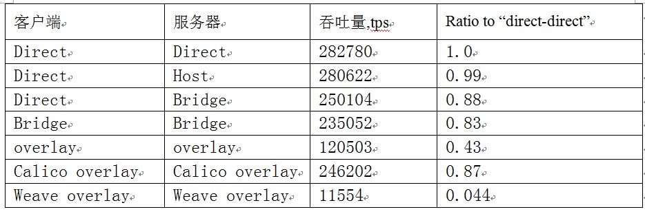 - Docker容器使用“overlay”网络,客户端和服务器都在通过overlay网络连接的容器里启动(结果里标记为“overlay”)。对于“overlay”网络,可以使用第三方插件,使用不同的网络实现,最知名的是: