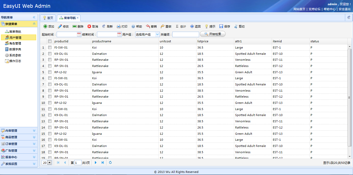easyui为创建现代化,互动,JavaScript应用程序,提供必要的功能。