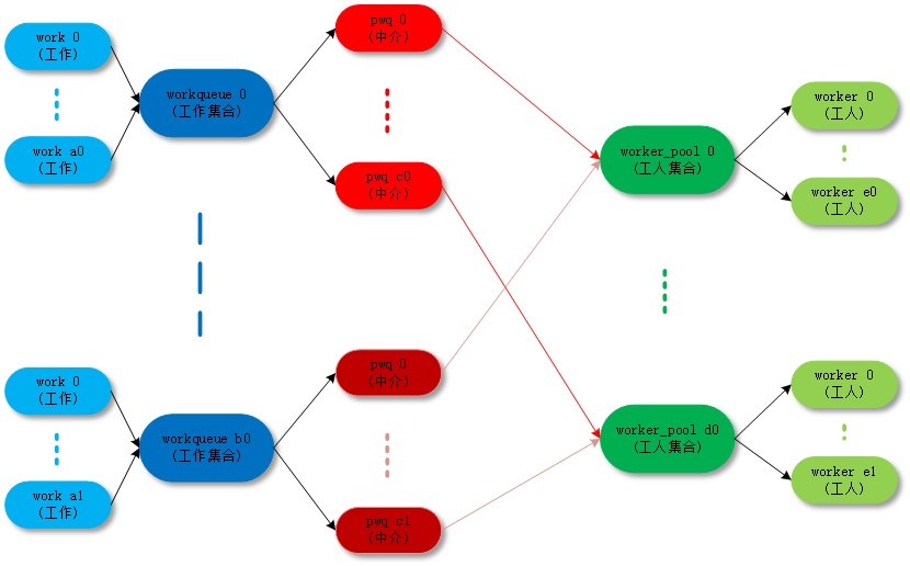 pool_workqueue 只是一个中介角色。