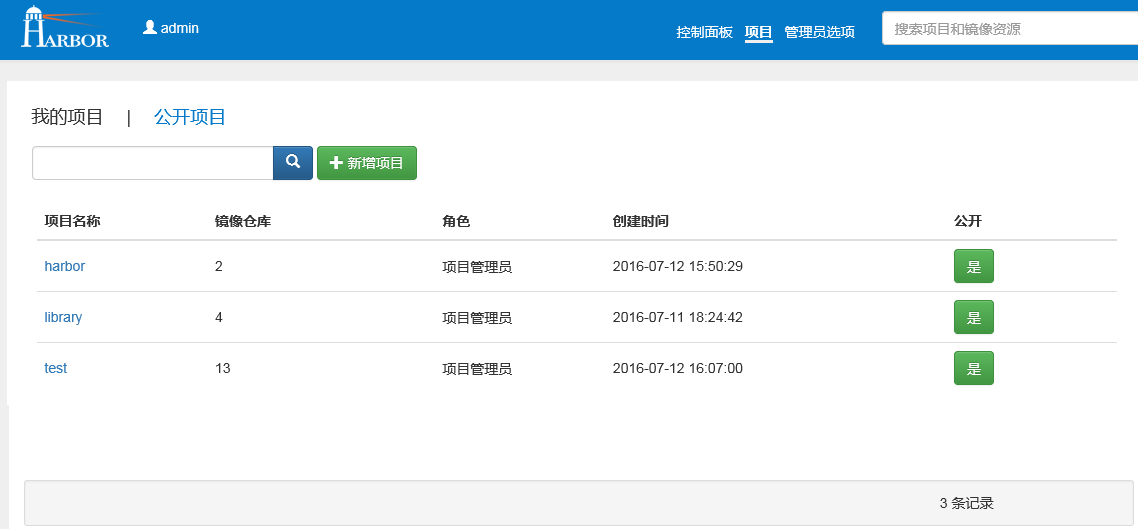 在Harbor Registry中,每个项目可有三种角色:项目管理员(project admin)、开发者(developer)和客人(guest)。某些项目,如放在library中的公共镜像, 可以允许匿名访问,即用户不同docker login也可以访问,这样可以方便使用。在整个系统中,还设有系统管理员,具有维护镜像同步策略、用户增删等权限。