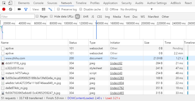 打开 Chrome ,按下 F12 、访问一个曾经访问过的网页,如果没有勾选 Disable cache ,很容易能看到这样的状态: