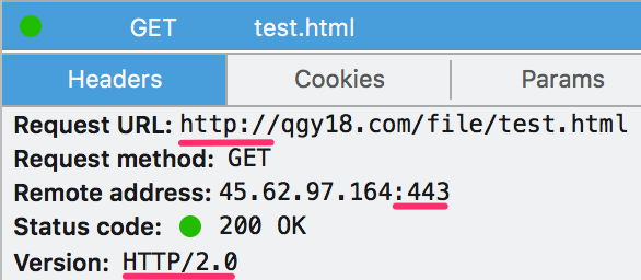 截图中的 Firefox 在网络层面,通过 TLS 加密通道发起了 HTTP/2 请求,但上层拿到的 Request URL 仍然是 http:// 开头的地址,浏览器地址栏也仍然显示为 http:// 。