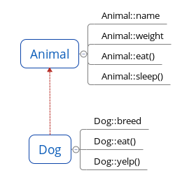 前一种情况中,需要将canidae指针向后调整sizeof(Animal)位,指向子类中对应的基类部分。