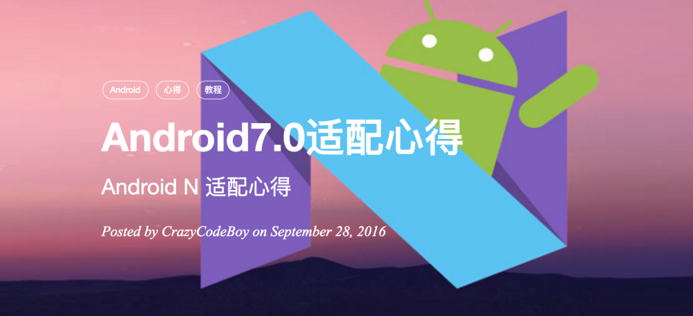 Android7.0发布已经有一个多月了,Android7.0在给用户带来一些新的特性的同时,也给开发者带来了新的挑战,这几天我将应用适配到Android7.0,其中也遇到了不少问题也踩了一些坑,在这里就把我在Android7.0适配上的一些心得分享给大家,让大家的应用能早一天跑在Android7.0上。