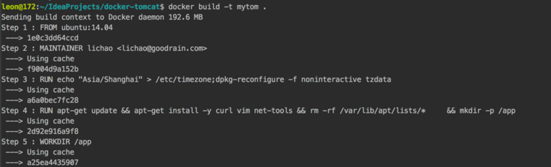 进入Dockerfile所在目录,运行命令 docker build -t mytomcat . (注意最后有个点用来表示当前目录,初次构建速度会比较慢,需要多等一会。)