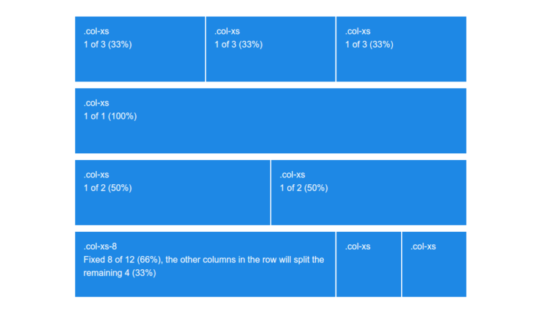 <div class="row"> <div class="col-xs-2">.col-xs-2</div> <div class="col-xs-4">.col-xs-4</div> <div class="col-xs-6">.col-xs-6</div> </div>