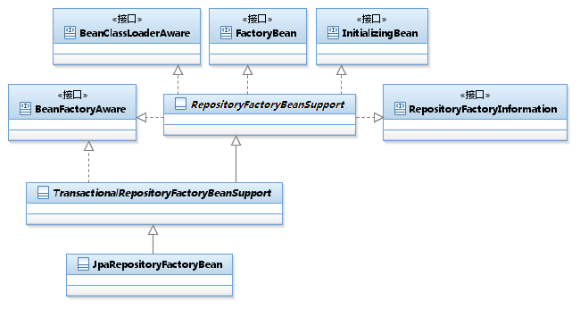 下面是spring-data-jpa中占重要地位的RepositoryFactoryBeanSupport和RepositoryFactorySupport的类图: