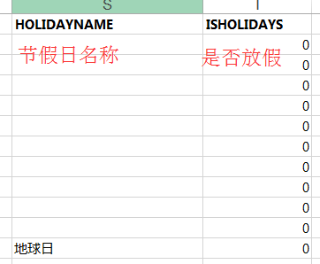 但是有个缺陷就是里面有两个字段:节假日名称和是否放假是空着的。