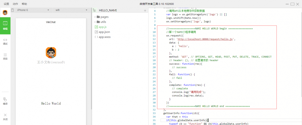 前端源码: //==================NAMI HELLO WORLD begin =================