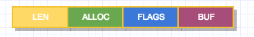 在 redis 中,字符串的基本结构如下,其中, len 表示字符串的长度, alloc 表示字符串的最大容量, flags 表示header的类型。