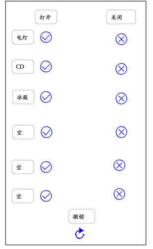 比如第一排的打开按钮,关联的操作是打开电灯。其他的按钮类似
