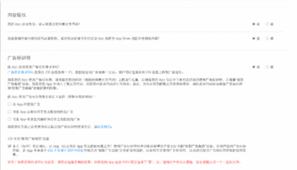 您的 App 正在使用广告标识符 (IDFA)。您必须先提供关于 IDFA 的使用信息或将其从 App 中移除,然后再上传您的二进制文件。