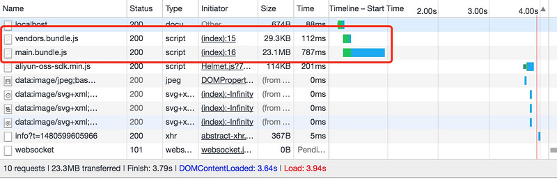 前端项目中,特别是移动环境下,我们特别关心用户的加载速度。加载速度的限制一个是并发链接数,受限于HTTP 1.1协议,浏览器的并发连接数存在一定限制,不过我们可以利用Webpack等模块打包工具将模块打包到一个文件中(如这里推荐笔者的 Webpack2 React Redux Boilerplate )。此时就会面临另一个问题,首屏加载时候包体过大,而本章节就关注于基于React的项目打包编译之后的包体大小优化。我们来看下未进行任何优化操作下的包体大小,也就是开发环境下的包体大小: