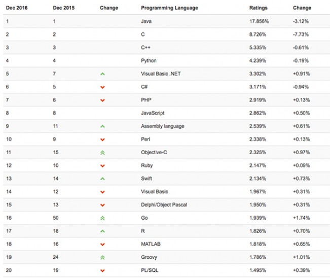 TIOBE Index for December 2016