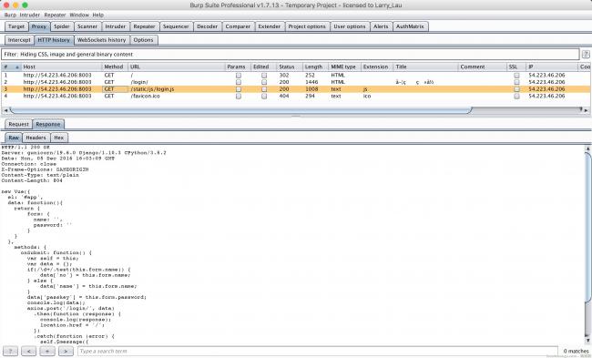 打开目标( http://54.223.46.206:8003/ )可以看到,一个登录页面。据我长期观察,50%的CTF题目打开都是一个登陆页面,而其中又有60%的可以用各种方式拿到源码。