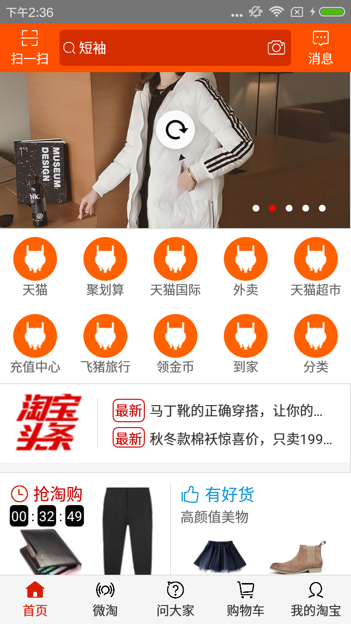 自己写的高仿淘宝界面(非常适合新手学习), 使用了RecyclerView,用RecyclerView的多条目布局做的,里面使用了一些自定义组件,可以学习到自定义属性的编写。里面还有一些工具性的东西,可以拿到你自己的项目中改改就用(懒人必备)