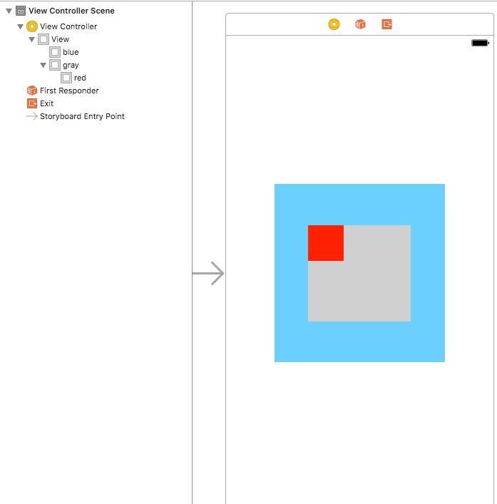 CGPoint redCenterInView = [self.grayView convertPoint:self.redView.center toView:self.view]; CGPoint redCenterInView = [self.view convertPoint:self.redView.center fromView:self.grayView];