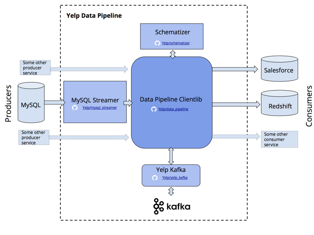 在过去的几个月里,Yelp一直在不断地向大家分享着他们的 数据管道 的情况(文章列表见页尾)。这是一套基于Python的工具,可以实时地将数据流向需要它们的服务,并随之加以必要的数据处理。这一系列的文章讲述了如何从MySQL中将消息复制出来、如何跟踪模式的变化及演进、并最终分享了如何把数据接入到Redshift和Salesforce等不同类型的目标存储。