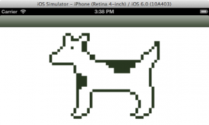 因此我登上了 IRC (Internet Relay Chat),在那里我遇到了一个很有意思的挑战。它是以 Clarus the dog cow 的形式出现的(译者注:一只像牛的狗,这个卡通形象由苹果传奇图形设计师 SusanKare 设计,在早期的 Mac 系统中,用来显示打印页面的朝向)。这只狗狗是以点阵图 (bitmap) 的形式出现的,通常情况下将其转换为 UIImage 并不是一件很容易的事。当然我觉得,应该有一种通用的方法能够将其转换为可重复使用的路径。