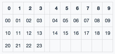 方法二:分类逻辑为第二个数字,可以分为两部分:[0-3]和[4-9]。为什么这么分?看看下面这个图就知道了,[0-3]多了一行(以2为第一个数字):
