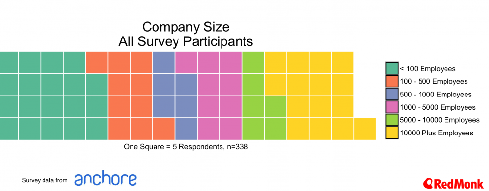 我们的受调查人口中,有60%工作在100人以上的公司,并且在各个职位都有分布。